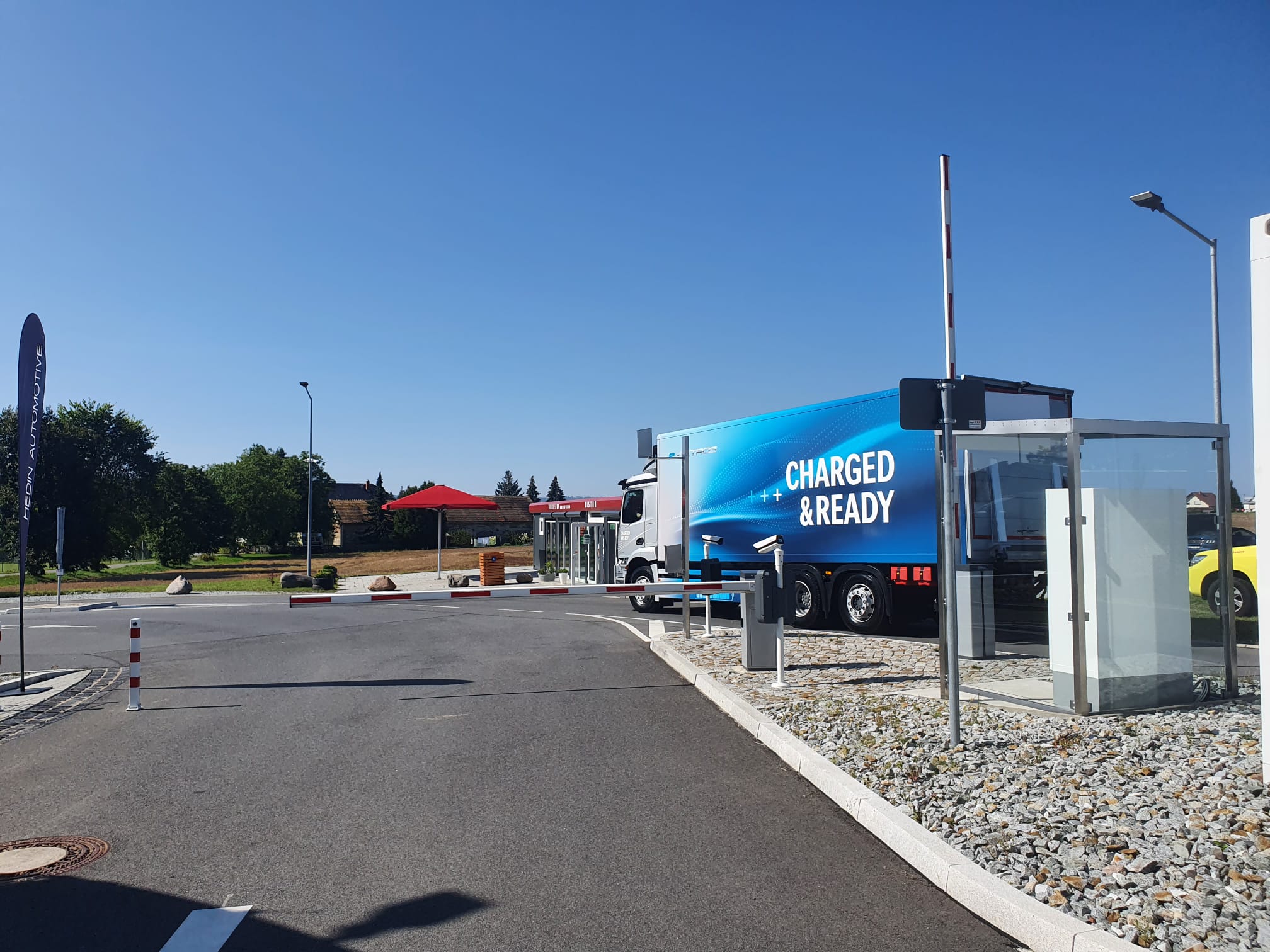Ein weiteres Highlight des Tages war die Präsentation der mobilen Ladeinfrastruktur. Das Team von Charge Your Truck, unterstützt von ihrem Partner Volt Vogel, demonstrierte, wie der E-Actros effizient und flexibel geladen werden kann. Diese mobile Lösung zeigt, wie die Elektromobilität auch auf langen Strecken und abseits fester Ladepunkte praktikabel wird.